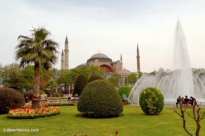 Hagia Sophia, “Holy Wisdom,” was originally a basilica style church built in the 4th century. After the church burned down twice, Emperor Justinian built the present, fireproof structure around AD 537. Hagia Sophia served as a Christian church for 900 years until 1453, when Moslem Turks took the city and converted it into a mosque. In 1935, it was turned into a public museum.