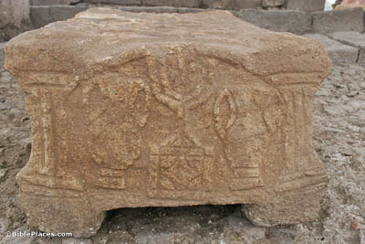 A unique feature of this synagogue was a decorated stone inscribed with a seven-branched menorah. According to the excavation director, Dina Avshalom-Gorni, “This is the first time that a menorah decoration has been discovered from the days when the Second Temple was still standing. This is the first menorah to be discovered in a Jewish context and that dates to the Second Temple period/beginning of the Early Roman period.” This depiction of a menorah lends evidence to the belief that, even in the Second Temple period, there was some symbolic connection between synagogues and the temple.