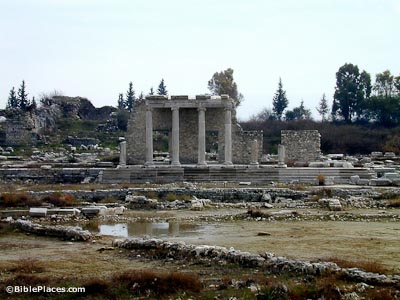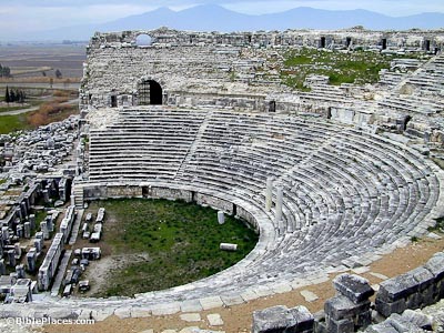 Paul visited Miletus for a day or two as he waited for his messengers to return with the Ephesian elders (Acts 20:15). When they arrived, he gave them a message of warning, his only recorded sermon given exclusively to believers (vv. 18-38). Apparently, after his release from imprisonment in Rome, Paul visited Miletus, as he notes leaving Trophimus in the city (2 Tim 4:20). The photograph on the left depicts the agora of Miletus.