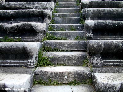 The theater benches are decorated with animal legs and paws along the aisles. Nearby one of the seats has a Greek inscription that reads “to the Jews.” Other evidence attests to the presence of a Jewish population in Miletus in the 1st century.