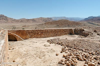 Feinan was occupied from the Chalcolithic age to the Byzantine period (4000 BC – AD 630). In Roman and Byzantine times, the site was known as Phaino. The Roman reservoir shown here collected water from springs in the wadi. Thousands of burials are located in the area, mostly from the Byzantine period.