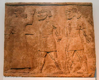 The concept of imprisonment was not widespread at this time. No provision is made for it in the Mosaic law, and the concept is relatively rare in the Hebrew Bible (cf. Gen 39:20-22; Judg 16:21-25). An interesting reference appears later in Jeremiah 44:15, where Jeremiah was confined to “the house of fetters in the house of Jonathan the scribe, which they had made into a prison.” This may indicate that even in later centuries there were not purpose-built prisons, and any such need was fulfilled by a temporarily designated space. This seems to be borne out by the fact that, to date, no structure of the Iron Age (or earlier) has been found that could be identified as a prison. By contrast, depictions of prisoners of war are quite common. This relief of prisoners with their hands bound behind them comes from the Central Palace of Tiglath-pileser III at Nimrud.