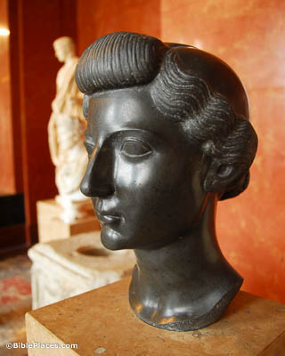 The word “adornment” (Gk. kosmos) and the related verb “to adorn” (Gk. kosmeō; cf 1 Tim 2:9; Titus 2:10) originally referred to the arrangement, order, or beautification of things. One skilled in adornment was referred to as a kosmētikos. Julia Titi was the daughter of the Roman emperor Titus. As a woman of high society, her fancy hairstyle and form of dress would have been emulated by women throughout the Roman empire. This portrait of Julia Titi illustrates fashion in the late 1st century AD. In antiquity, this sculpture was painted and included earrings, a necklace, and a diadem, all of which were likely composed of gold and precious stones.