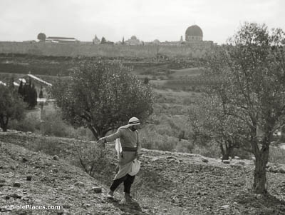 The principle of this verse is that one’s return is directly proportional to one’s investment. This American Colony photo, taken between 1927 and 1933, shows a man sowing grain on the Mount of Olives. The walls of the Old City are visible in the background.