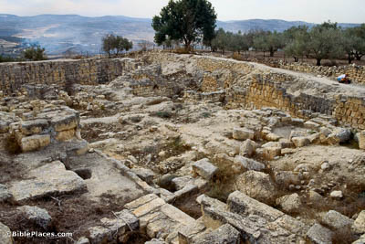 Although the Iron Age palace at Samaria has been excavated, it is not visible today. The excavators uncovered it in strips and placed the debris from each subsequent strip in the place previously excavated, so that today the palace is again covered up. The Iron Age ruins visible here belong to the last area excavated, at the western end of the acropolis, including the House of the Ostraca.
