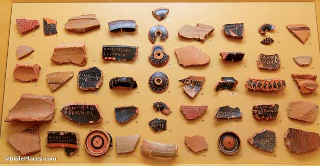 In a social context, to “keep away” means to shun. The ancient Greeks practiced a formal kind of shunning known as ostracism. Ostracism in ancient Greece required a minimum number of votes, recorded as names scratched on potsherds and submitted to city officials when an ostracism was under question. Numerous ostraca of this kind appear in this photo. If a person was ostracized, they were required to leave the city for 10 years, on pain of death. While the purpose and method of Greek ostracism differed from what is described here by Paul, the end result was similar.