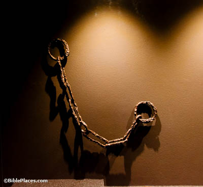 The text does not explicitly state that the apostles were chained, but it is not unlikely. The iron chains shown here are one of a number of sets that have been found that were intended to be worn by slaves. They date to the 1st century AD.