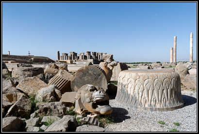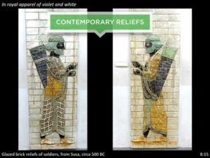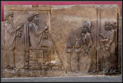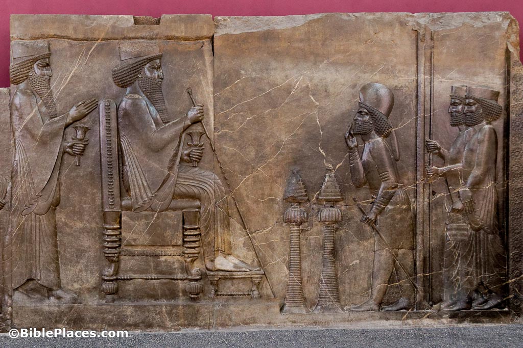 - Contemporary Persian reliefs depicting Ahasuerus, his officials, and his soldiers