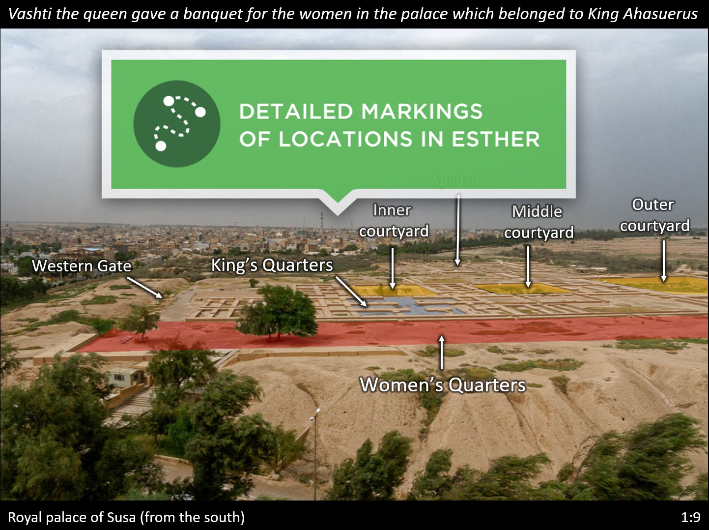 - The exact spots where Mordecai overheard the conspiracy, Ahasuerus sat on his throne, and Haman waited early in the morning