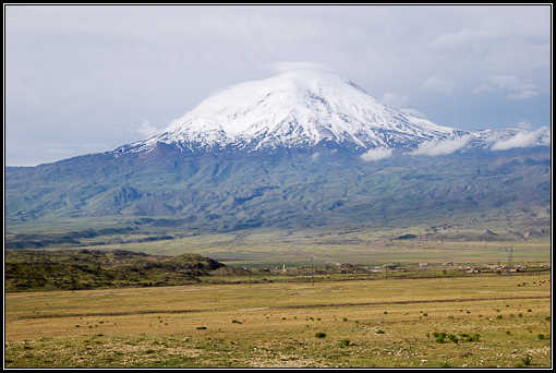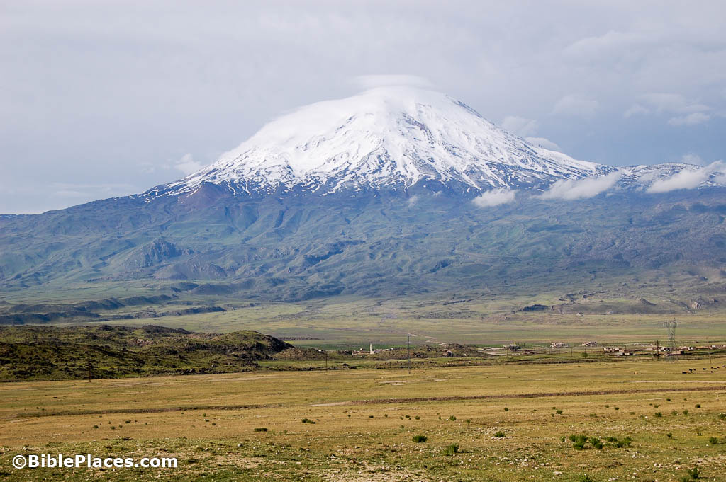 The waters of Noah’s Flood began receding when the Lord sent a wind over the earth, and the ark came to rest on the mountains of Ararat (Gen 8:1-4). The mountain shown here, known as Greater Ararat or Büyük Agri Dagi, is the mountain most commonly associated with the landing site of Noah’s ark in modern times. The tradition goes back at least to the 11th or 12th centuries.