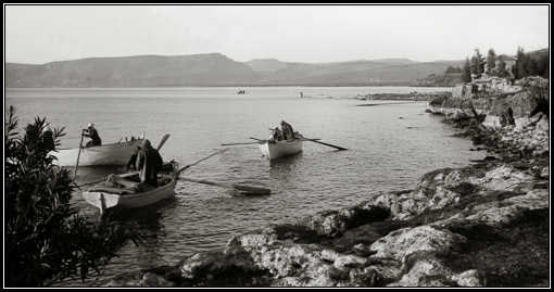 “Fishing off Tiberias is only followed to a considerable extent during the winter and early spring months. It is not nearly so important as that along the northern shore from Mejdel [Magdala] to el Bataihah [Bethsaida]. The bay at et Tabaghah [Tabgha] is, during the early months of spring, a wonderful place for fish; they swarm there, attracted by the copious hot springs which, loaded with vegetable débris, here pour their waters into the Lake. For about three months—mid-January to mid-April—the fisherman make this their head-quarters, erecting a few tents or reed huts on the shore, close to the mills. While the water a few yards out teems with larger fish, the shallows close in shore swarm with small fish-fry” (Masterman 1908: 41).