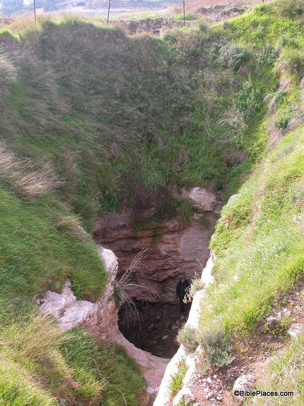 The Baptist Press recently posted an article about the Middle Bronze II water tunnel at Tel Gezer. The excavation team is currently clearing out the tunnel and conducting a detailed study of it. Below is a picture of the entrance to the tunnel taken in 2004 by Todd Bolen. The tunnel begins to the left of where the man is standing and descends underground past the left side of the picture. (Recent pictures from inside the tunnel are posted with The Baptist Press article.)