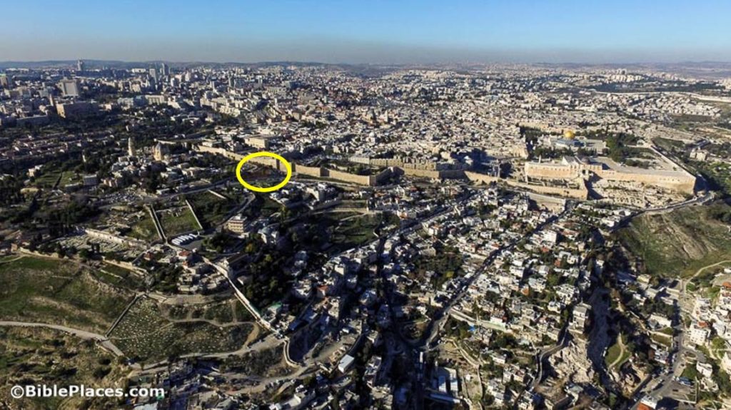 Jerusalem from the south, with excavation area circled