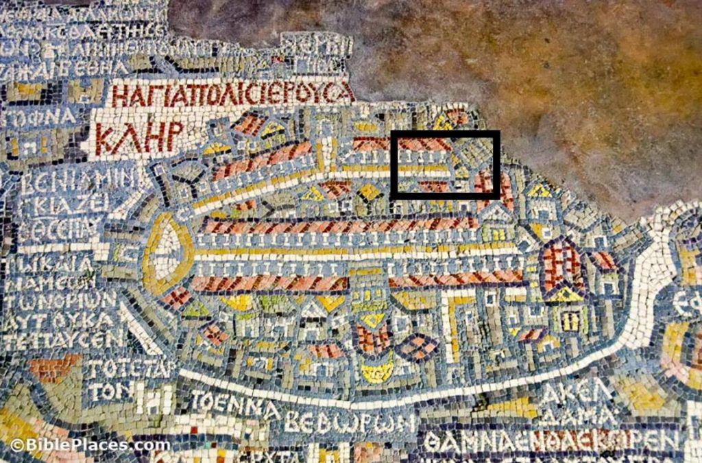 Jerusalem, as depicted on the Medeba Map (circa AD 580); the excavation area is marked with a black box