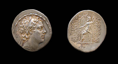 The “contemptible person” is Antiochus IV Epiphanes (reigned 175–164 BC), the younger son of Antiochus III and the younger brother of Seleucus IV. Antiochus IV is the focus of the prophecy of Daniel 8. In Daniel 11, it is revealed that Antiochus IV was a prophetic type of the “little horn” of Daniel 7 and the “coming prince” of Daniel 9, i.e., the future antichrist. This coin depicts him as Zeus, whose manifestation Antiochus claimed to be.