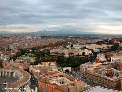 The traditional view is that Paul wrote Ephesians during his imprisonment in Rome sometime around AD 61. Philippians 1:13 indicates that he was under guard (cf. Acts 28:16). This photo provides a bird’s-eye perspective of the modern city of Rome, looking in the direction from which Paul approached the city. In Paul’s day, the population of Rome is estimated to have been one million people. Today the population of Rome is just under three million.