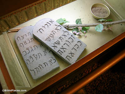 The commandment cited here by Paul is one of the Ten Commandments (Exod 20:1-17); as noted by Paul, it is unique in that it comes with a promise of blessing if it is obeyed. These modern tablets were photographed at the tabernacle reconstruction at Timna Park in southern Israel.