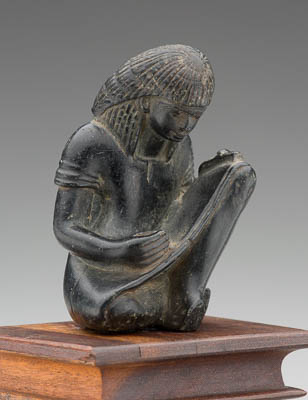 This Egyptian graywacke statue of a scribe portrays him writing on a partly unrolled papyrus scroll. The obvious choice for Moses would have been to write on a papyrus roll that had been brought out from Egypt. This image comes from the Detroit Institute of Arts and is in the public domain.