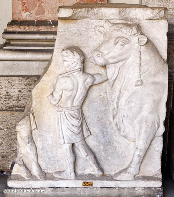 Under the Mosaic law, sacrifice was required regularly to deal with sin. The people of Rome also sacrificed often in order to appease their gods. The author of Hebrews argues that peace with God does not come through animal sacrifices but through the ultimate sacrifice of Jesus. This Roman relief depicts a man leading a bull, probably to sacrifice at a pagan temple. It was photographed at the Vatican Museums.