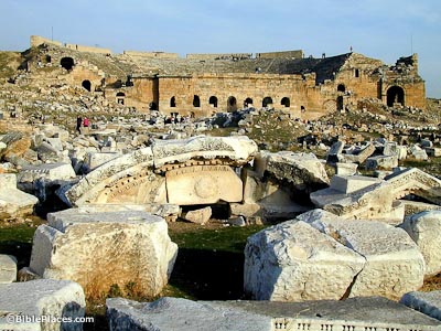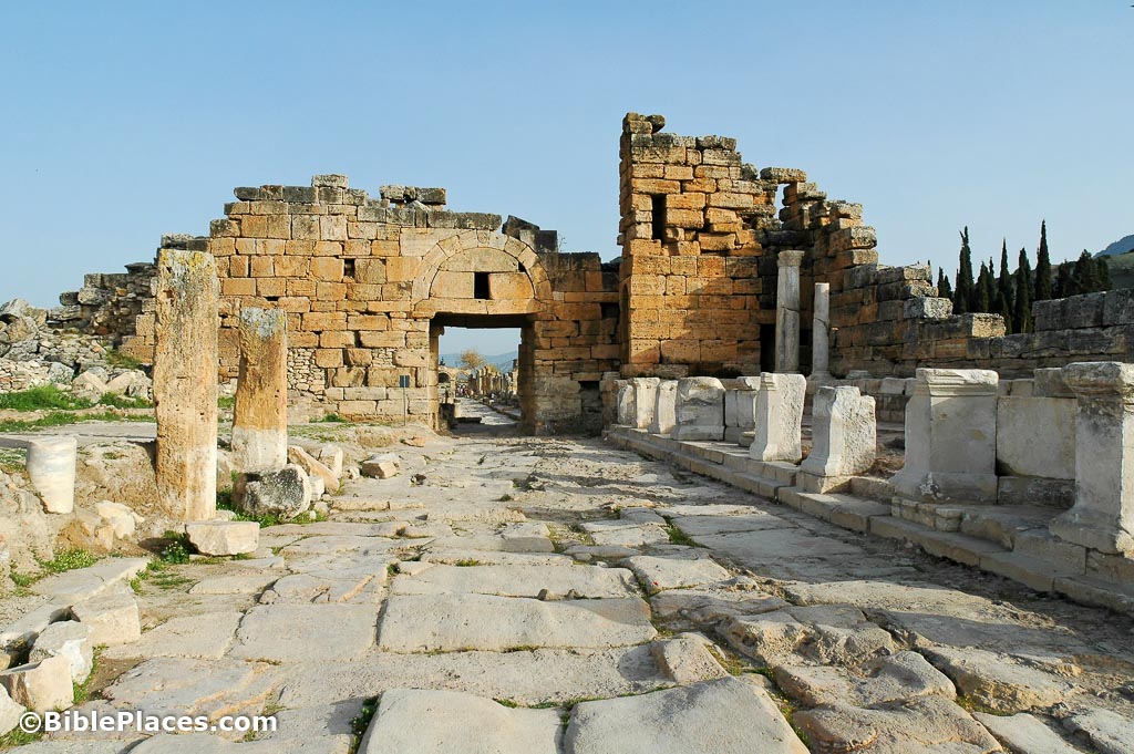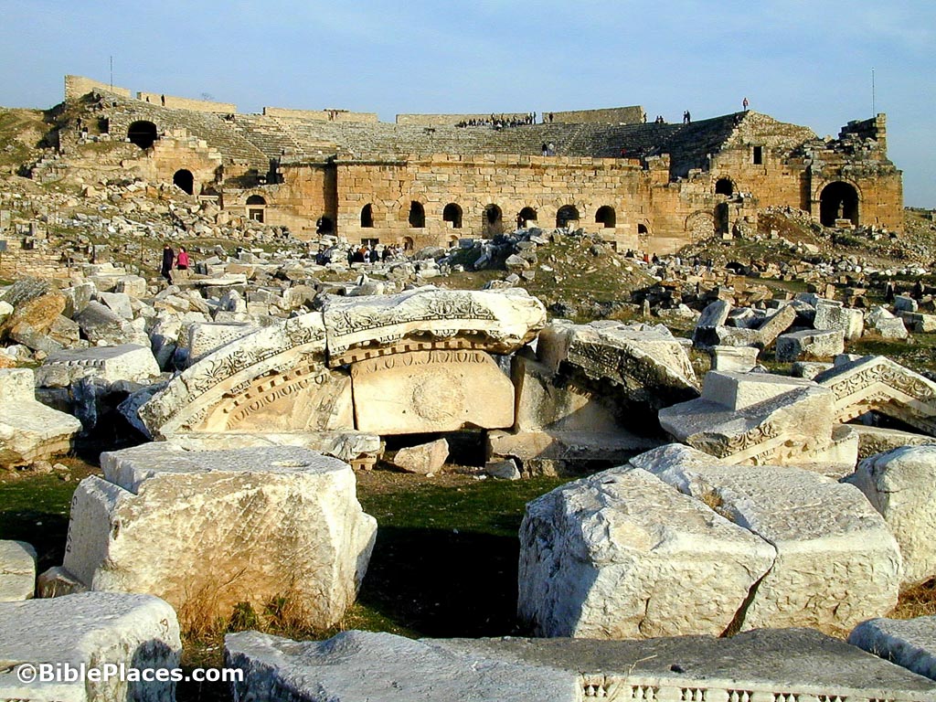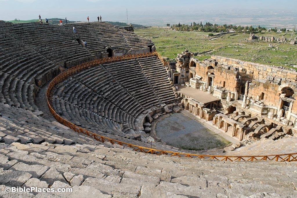 Hierapolis, the “Sacred City,” is located at present-day Pamukkale in south central Turkey. In the 1st century, it was part of the tri-city area of Laodicea, Colossae, and Hierapolis. This connection between the cities lies behind Paul’s reference to Hierapolis and Laodicea in his epistle to the Colossians (Col 4:13). Before AD 70, Philip (either the apostle or the evangelist) moved to Hierapolis, where he was believed to have been martyred.