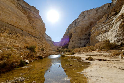 The description of Judah’s border begins at the southern edge, with the wilderness of Zin. The border between Canaan and Edom went through here, probably because its prominent drainage system makes for a natural boundary. Nahal Zin is the largest wadi that begins in the Negev; it stretches for 75 miles (120 km) and drains 600 square miles (1550 sq km). Today visitors enjoy walking through this canyon, part of the Ein Avdat National Park.