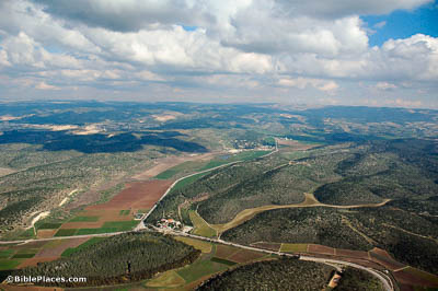 Samson’s visit would have taken him down the Sorek Valley to Timnah. If he took the easiest way, the distance would have been about 6 miles (10 km). Timnah is the mound in the foreground of this picture, while Zorah is located in the distant hills.