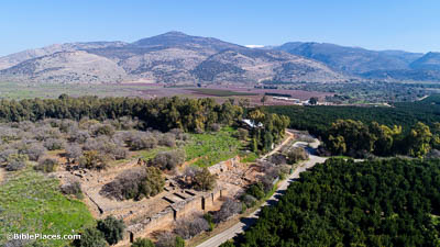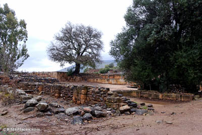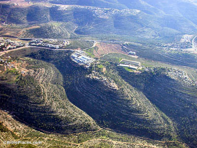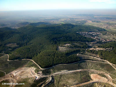 Zorah and Eshtaol were located in Danite territory on its southern edge, next to Judah. The two sites are only about 1.5 miles (2.5 km) apart. Zorah was also the hometown of Samson, although Samson lived at the end of the Judges period and the Danite migration may have taken place before his time. Zorah can be seen near the center of this photo, in the clear spot among the trees. Eshtaol is a little ways off the right side of the image.