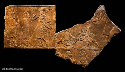 This wall carving comes from the palace of Ashurbanipal (669–627 BC) at Nineveh. It portrays the king’s armorers testing his equipment before a hunt. The man second from the left inspects a bow, while the man in front of him peers down the length of an arrow shaft to check that it is straight. These activities illustrate the testing that God planned for His people, to see if they would remain faithful and true.