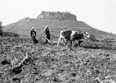 To “lay hold of” (Gk. katalambanō) carries the sense of making something one’s own, sometimes in the sense of winning (a competition), but also in the sense of attaining or coming into possession of (as in an inheritance). Paul’s hope of eternal life is, in fact, a hope, something which is not yet in hand. A similar idea was stated by Jesus when He said, “No one, after putting his hand to the plow and looking back, is fit for the kingdom of God” (Luke 9:62, NASB), reaffirming the need to continue on in faith. This is illustrated here by a man plowing with a pair of cattle; his work does not have an immediate reward but is a necessary step in gaining the harvest. This American Colony photo was taken in April of 1938.