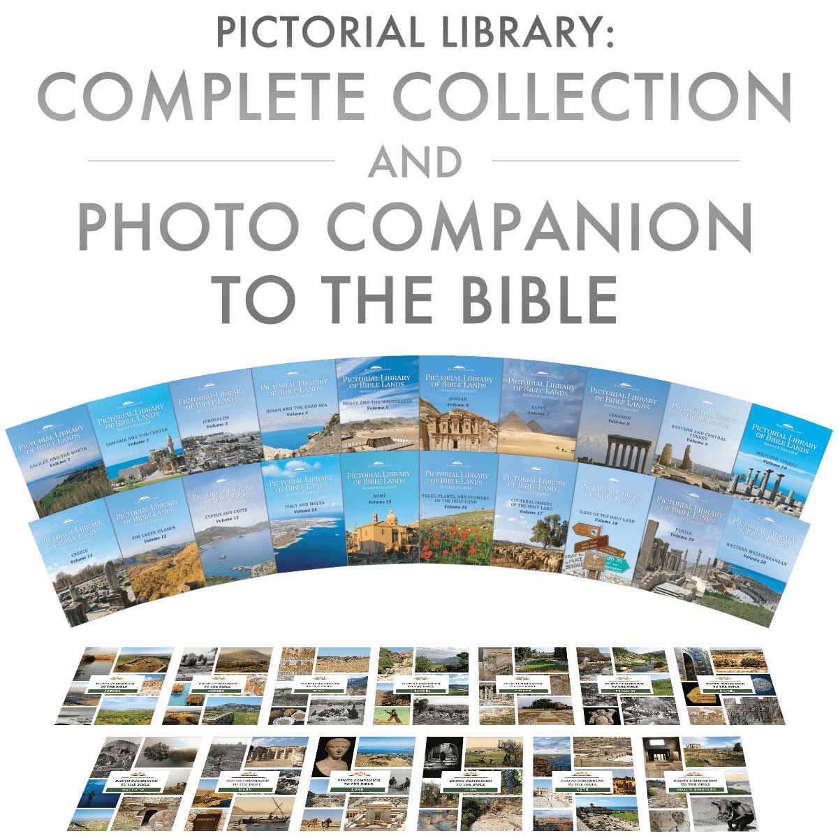 All 20 volumes in the Pictorial Library of Bible Lands and all 22 volumes (Gospels, Acts, Romans, 1–2 Corinthians, Galatians, Ephesians, Philippians, Colossians & Philemon, 1 & 2 Thessalonians, 1-2 Timothy & Titus, Joshua, Judges, 1-2 Samuel, Ruth, Esther, Psalm 23, Daniel) in the Photo Companion to the Bible