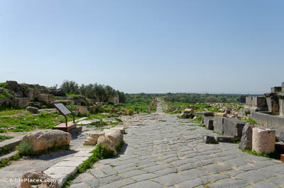 The “street” of the New Jerusalem is likely an east-west street, since the tabernacle and the temple faced eastward (cf. Num 3:38; Ezek 10:19; 11:23; 43:1-4), and the river of life-giving water that flows out of the millennial temple flows eastward (Ezek 47:1-12). Roman cities typically had a main north-south street called the cardo maximus, and a main east-west street called the decumanus maximus. John evidently understood the main street of the New Jerusalem to be analogous to the decumanus maximus, and therefore he simply refers to it as “the street.” Shown here is the decumanus maximus of Gadara.