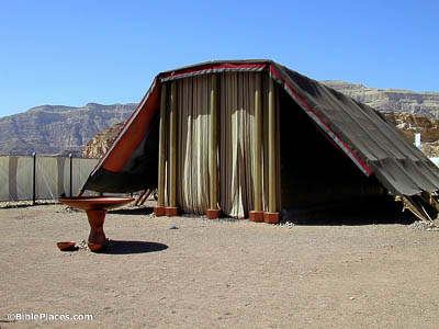 The word “tabernacle” (Gk. skēnē) refers to a place of shelter, and it usually refers to a temporary, movable structure like a tent (e.g., Luke 9:33; LXX Gen 4:20). The word is often used to refer to the tabernacle of Yahweh among the Israelites (LXX Exod 27:21), which itself was patterned after a heavenly tent (Heb 8:5). The tabernacle was the Lord’s first dwelling in the midst of His people Israel, and Jesus later “tabernacled” in the incarnation with His people (John 1:14). The full-size model of the tabernacle shown here was photographed in the Timna Park in southern Israel.