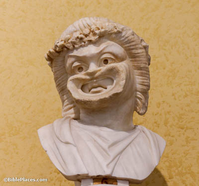 “Without hypocrisy” (Gk. anupokritos) refers to being genuine or sincere. The related word “hypocrite” (Gk. hupokritēs) referred to an actor or pretender. The word comes from Greek theater, in which the actors wore masks in order to portray themselves as a different character. The bust shown here reveals both the wide grin of the comic mask and the pensive face of the actual actor.