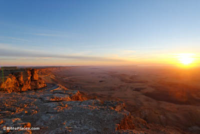 The verb “to renew” (Gk. anakainōsis) is one that is not found outside of Christian literature. It carries the idea of making something new again. Perhaps Paul had in mind the words of Jeremiah when he spoke of the daily renewal of God’s compassion toward His people. “The steadfast love of the LORD never ceases; his mercies never come to an end;  they are new every morning; great is your faithfulness” (Lam 3:22-23, ESV). Many places are most beautiful in the early morning light, at the dawning of a new day. This photo is from the northern rim of Machtesh Ramon in southern Israel, looking east toward the rising sun.