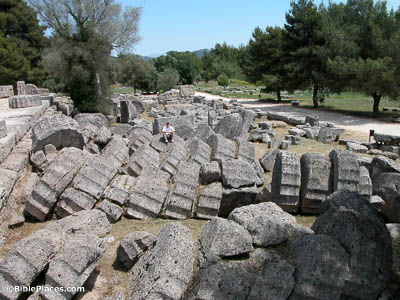 The word “overthrow” (Gk. anatrepō) is a strong word that indicates causing something to fall, to be destroyed, or to be ruined. The idea is illustrated here figuratively by the ruins of a Greek temple. The columns of the Temple of Zeus at Olympia were built of stacked drums. The temple was built in the second quarter of the 5th century BC and continued in use for nearly a thousand years. The Byzantine emperor Theodosius II ordered the temple to be destroyed in AD 426, although many scholars believe the columns shown here may not have fallen until the earthquakes of AD 522 or 551.